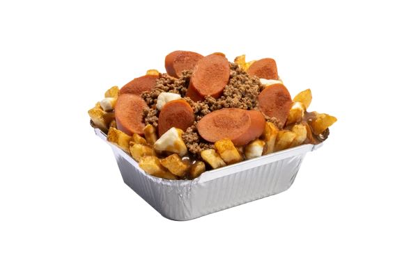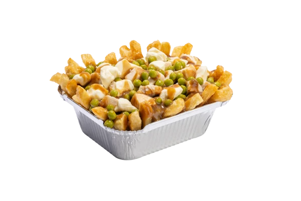 Ce n’est pas une poutine, mais un amalgame parfait de sauce onctueuse, de tendres morceaux de poulet, de petits pois et de frites fraîchement coupées et croustillantes. Vous pouvez demander d’y ajouter du fromage en grains, mais la vraie recette n’en contient pas. Après tout, nous sommes bien placés pour le savoir : c’est notre création.